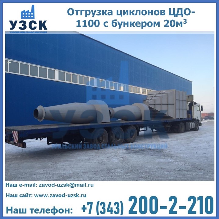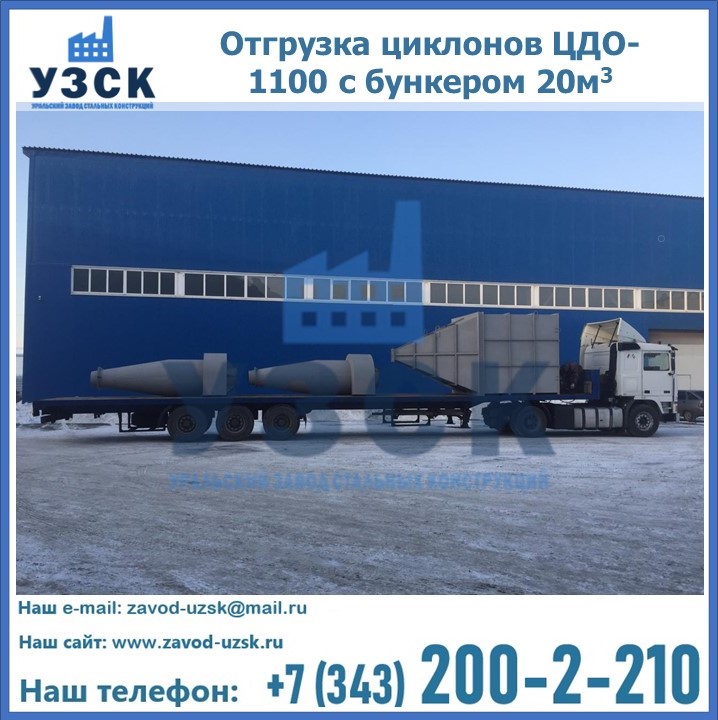 Циклоны ЦДО-1100 с бункером на 20 кубов были отгружены в декабре 2018 года в г. Новосибирск Омск.
