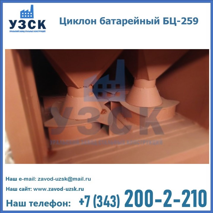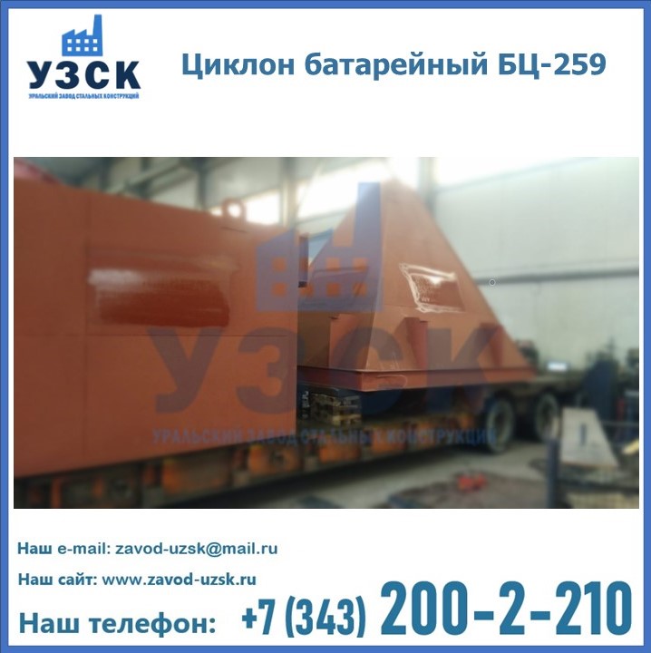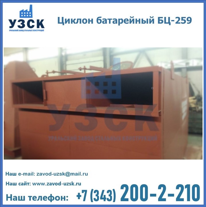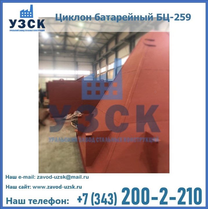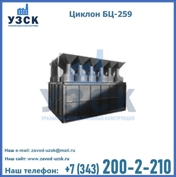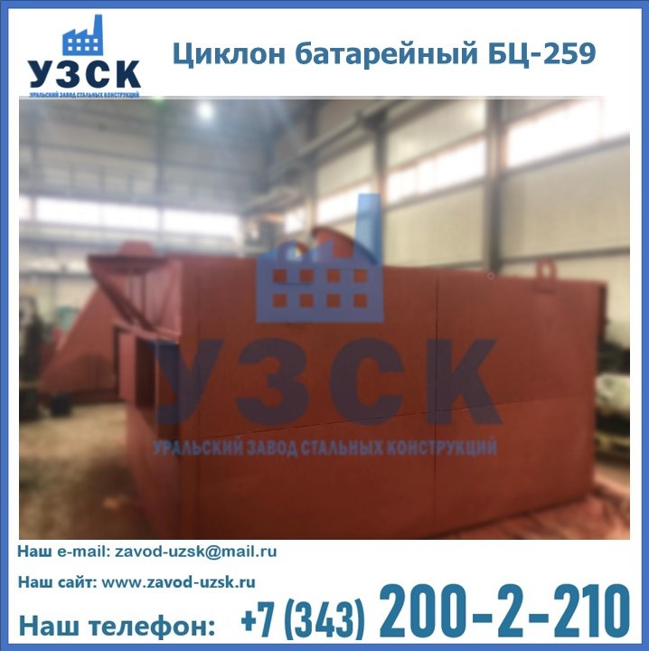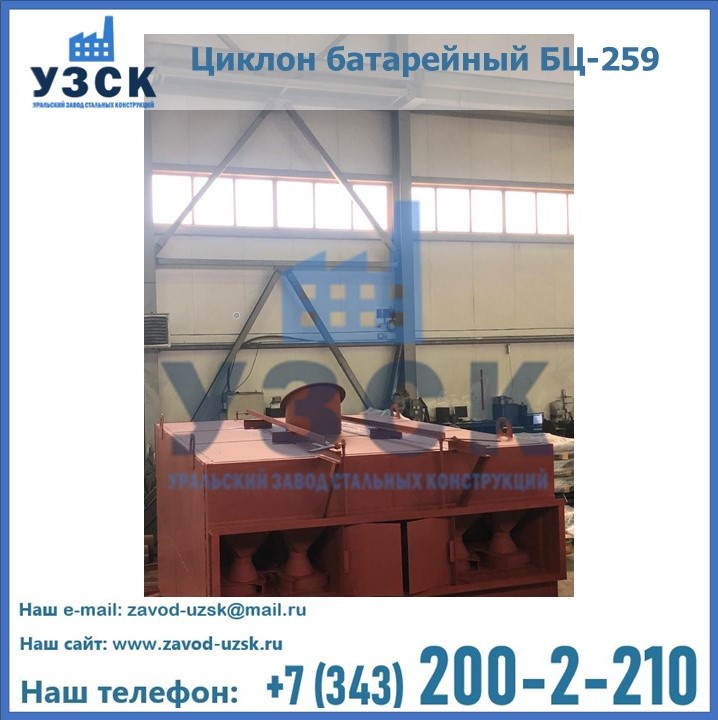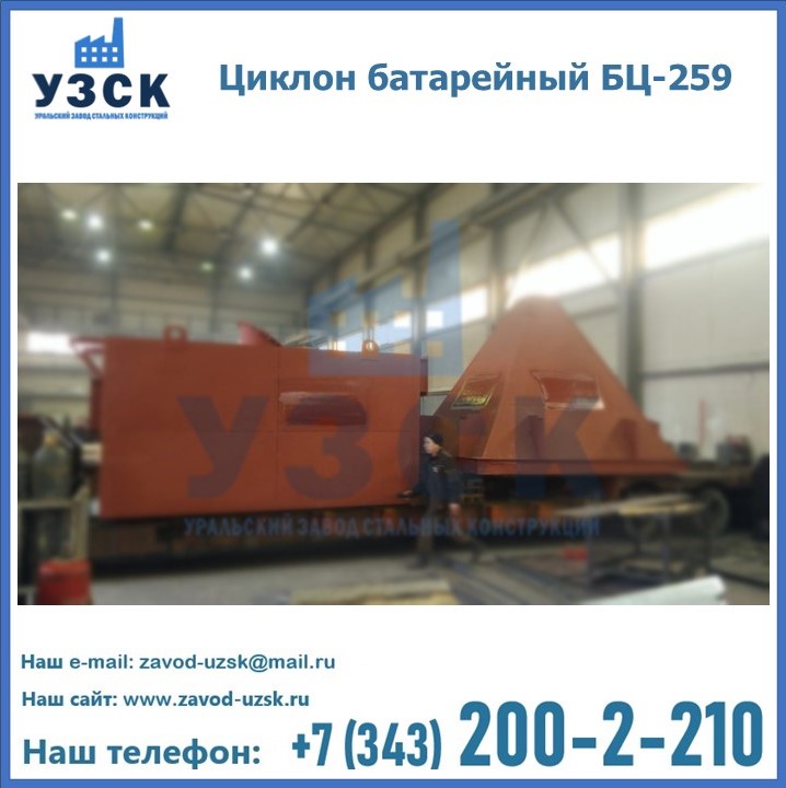 Приобрести качественное оборудование, в том числе, циклоны БЦ-259, можно в компании УЗСК в Омске. Мы предлагаем долговечную и надежную продукцию по приемлемой цене. Заказать и купить циклоны или другие изделия высокого качества можно через сайт Уральского Завода Стальных Конструкций, или позвонив по указанному в разделе «Контакты» телефону.