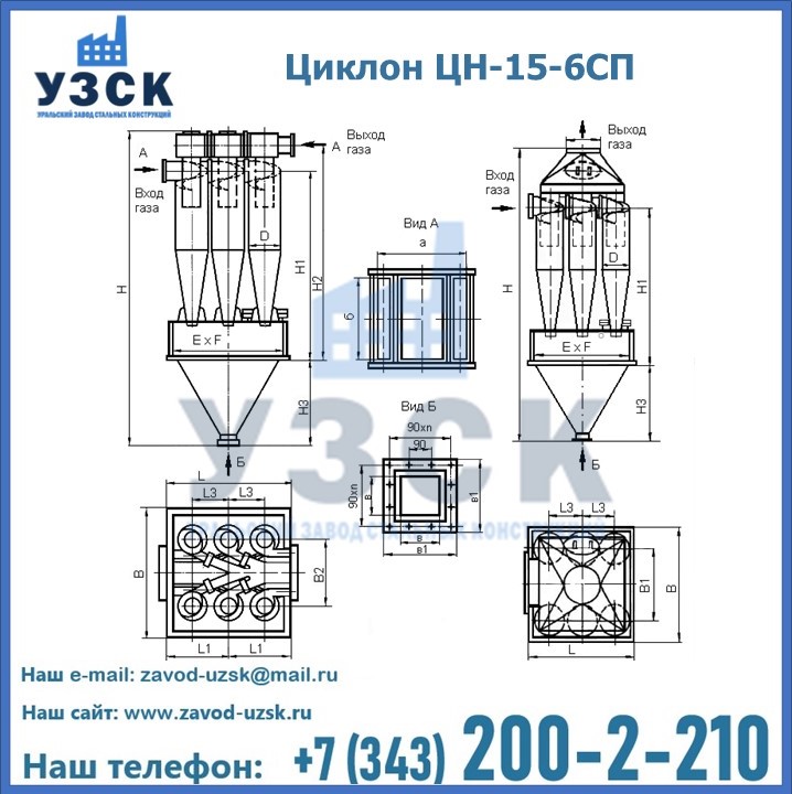 Завод «УЗСК» в Омске предлагает большой выбор циклонов ЦН-15-900×6СП и прочих устройств, полностью укомплектованных и готовых к эксплуатации. Мы гарантируем соответствие оборудования всем требованиям ГОСТ и ТУ, износостойкость и высокую производительность предлагаемого оборудования. Уральский Завод Стальных Конструкций изготавливает и продает надежное, эффективное и производительное оборудование, имеющее длительную гарантию и большой эксплуатационный ресурс. Если требуется изготовить циклон нестандартных размеров, то такой вариант выполнения заказа тоже предусмотрен, так как предприятие имеет собственные производственные площади и надежных поставщиков. На все поставляемое или производимое оборудование имеются чертежи и прочая техническая документация. Заказать и купить циклоны или прочее оборудование высокого качества и по доступной цене можно через наш сайт или по указанному в разделе «Контакты» телефону.