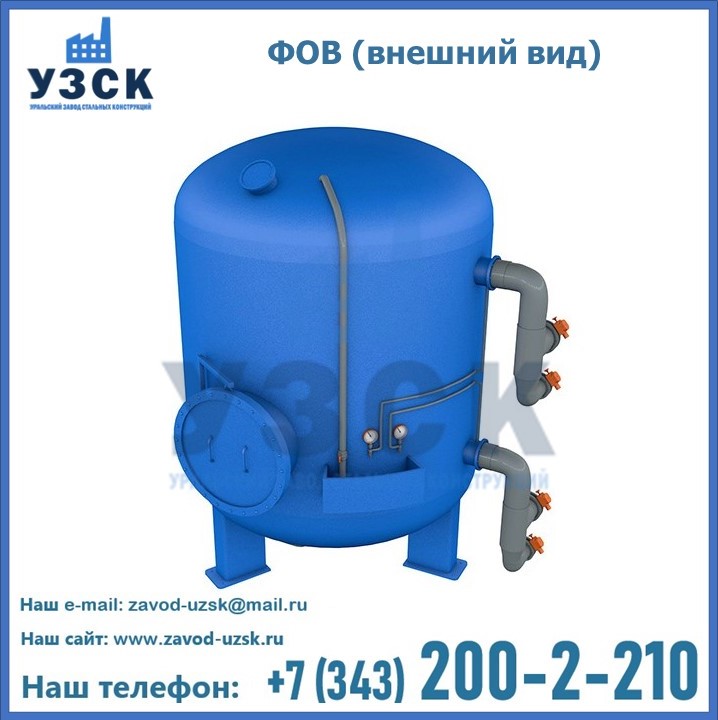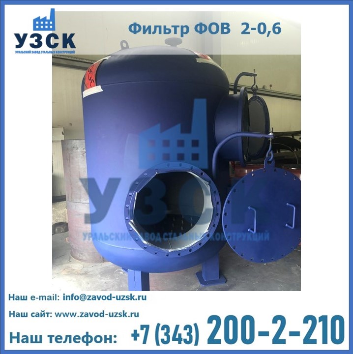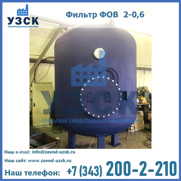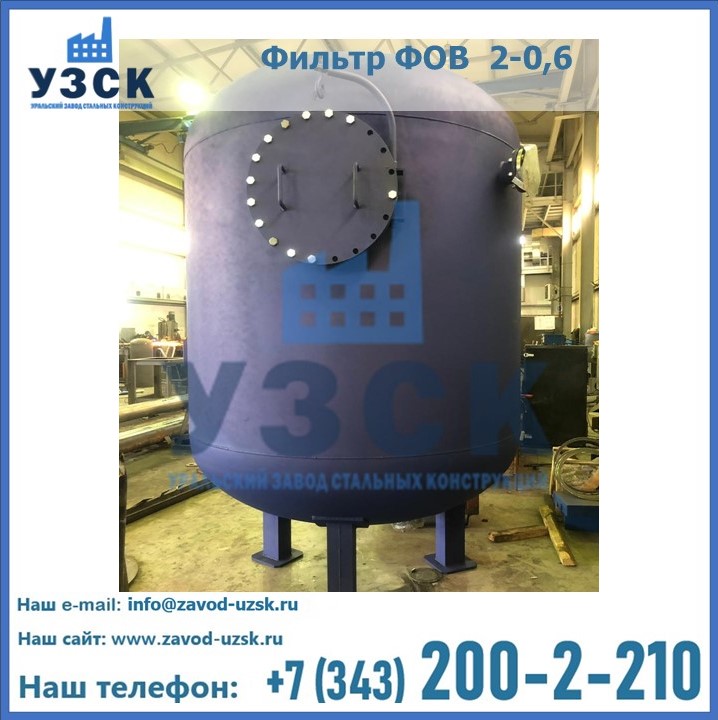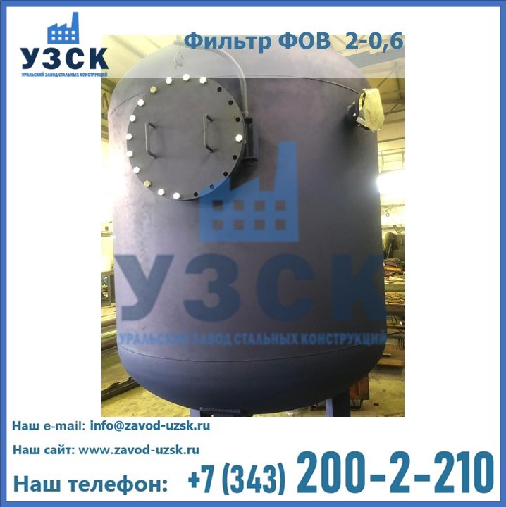 Удаление взвешенных веществ различного уровня дисперсности из рабочих жидкостей эффективно проводит фильтр осветлительный типа ФОВ (скорый или механический) — вертикально-цилиндрической формы установка, разработанная для систем водоподготовки различного класса. Оборудование представляет собой однокамерный агрегат для очистки воды рекомендованный для применения на станциях очистки стоков, в коммунальных котельных, на ТЭЦ, в промышленных отопительных системах и пр. Заказать производство ФОВ фильтров предлагает наш Уральский завод стальных конструкций в Омске. У нас можно купить фильтрационное оборудование различного класса и типа, в том числе фильтры ФОВ из нержавеющей стали.