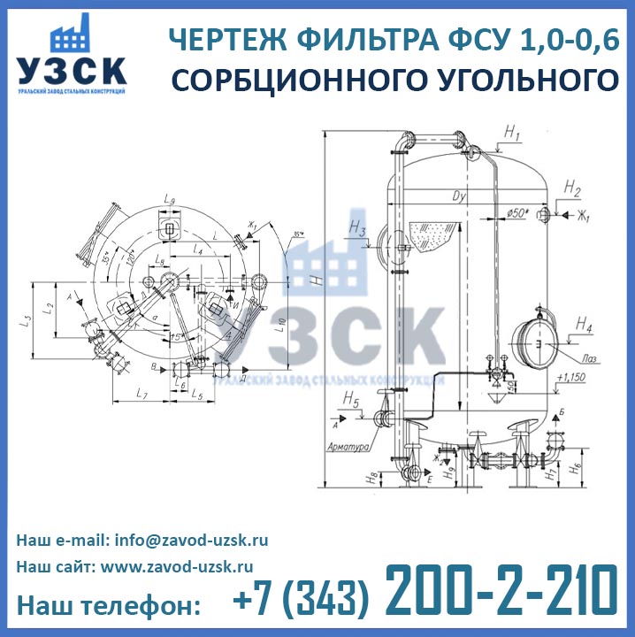 Наш завод (Уральский завод стальных конструкций) является производителем угольных фильтров, сам осуществляет изготовление и реализацию выпускаемой продукции. Приобретая фильтры ФСУ-1.0-0.6 в Омске от производителя, Вы приобретаете оборудование без наценок всевозможных посредников, а также значительно экономите свое время. Фильтры ФСУ1.0-0.6 завода УЗСК – это гарантия качества, кратчайшие сроки изготовления и цена, которая Вам понравится.