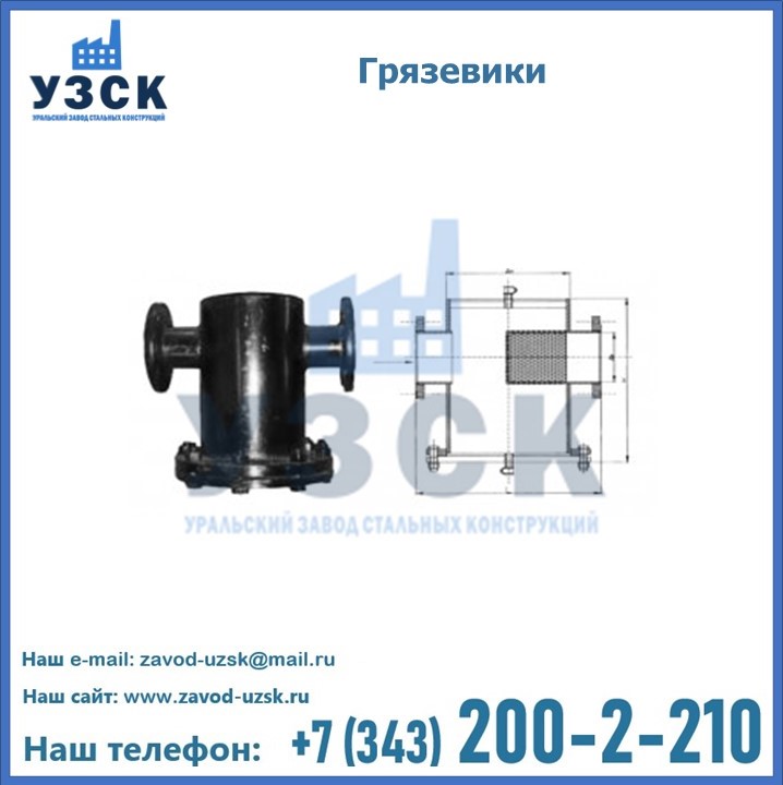 Уральский Завод Стальных Конструкций занимается производством и реализацией грязевиков в городе Омск, в наличии устройства горизонтального и вертикального типа, соответствующие всем требованиям и стандартам, в том числе условиям «Правил устройства и безопасной эксплуатации».