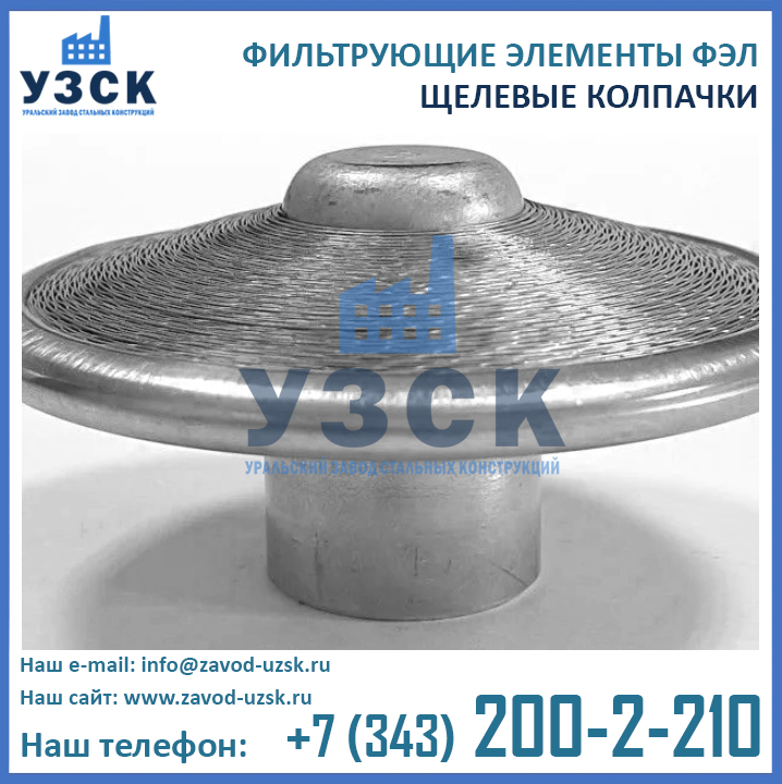 Колпачки щелевые – это дренажные фильтрующие элементы (ФЭЛ), являющиеся основными комплектующими верхних и нижних сборно-распределительных устройств в водоподготовительных фильтрах. Фильтроэлементы ФЭЛ изготавливаются из нержавеющей стали различных марок (12Х18Н10Т, 10Х18Н9, 10Х17Н13М2Т, AISI321, AISI304, AISI316Ti и аналогов).