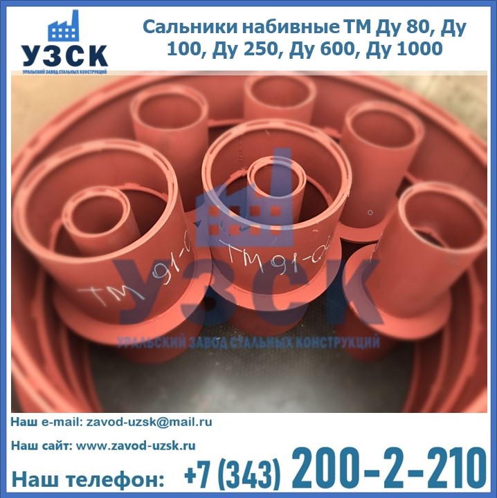 На производственных площадях Уральского Завода Стальных Конструкций в Омске профессиональные сотрудники занимаются проектированием и разработкой различных закладных деталей, в частности осуществляется производство и реализация набивных и нажимных сальников. Все изделия, которые можно приобрести у нас, отвечают установленным требованиям по ГОСТу, а также прочей нормативной документации.