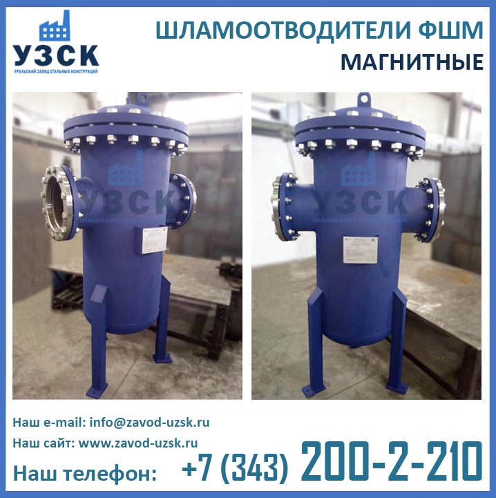Являясь непосредственным изготовителем фильтров магнитных ФШМ, Уральский завод стальных конструкций предлагает самые низкие цены на шламоотделители ФШМ Ду250 в Омске. Производство магнитных шламоотводителей осуществляется в самые короткие сроки специалистами сварочного производства НАКС по аттестованной технологии сварки при помощи сварочного оборудования, аттестованного Национальным агентством контроля сварки.